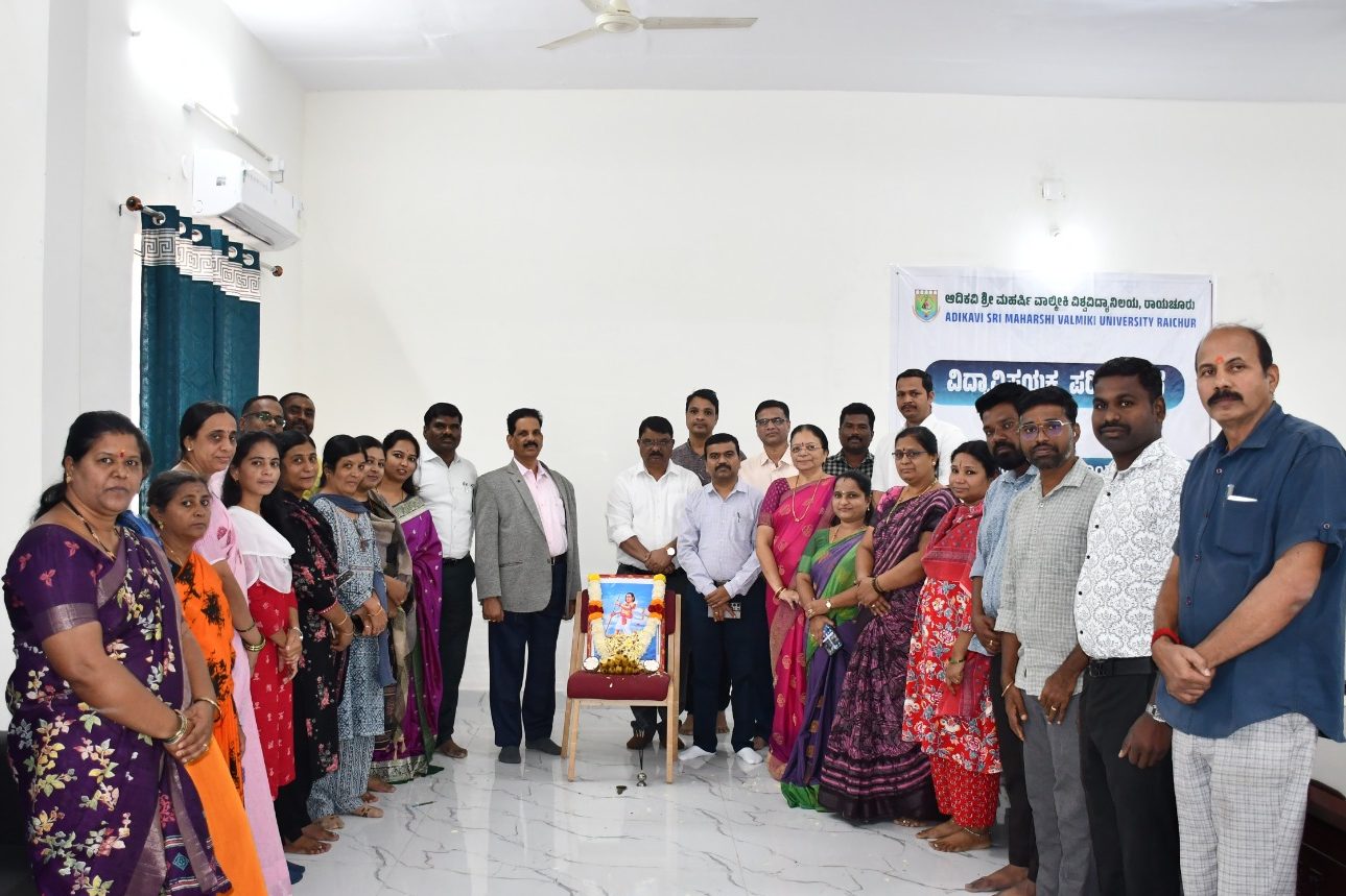 ದಿ. ೨೧ ಜನವರಿ ೨೦೨೬ : ಆದಿಕವಿ ಶ್ರೀ ಮಹರ್ಷಿ ವಾಲ್ಮೀಕಿ ವಿಶ್ವವಿದ್ಯಾನಿಲಯದ ಸಿಂಡಿಕೇಟ್ ಹಾಲ್ನಲ್ಲಿ ನಿಜಶರಣ ಅಂಬಿಗರ ಚೌಡಯ್ಯ ಜಯಂತಿಯನ್ನು ಅವರ ಭಾವಚಿತ್ರಕ್ಕೆ ಪುಷ್ಪ ನಮನ ಸಲ್ಲಿಸುವ ಮೂಲಕ ಆಚರಿಸಲಾಯಿತು. ಈ ಸಂದರ್ಭದಲ್ಲಿ ಆದಿಕವಿ ಶ್ರೀ ಮಹರ್ಷಿ ವಾಲ್ಮೀಕಿ ವಿಶ್ವವಿದ್ಯಾನಿಲಯದ ಕುಲಪತಿಗಳಾದ ಪ್ರೊ.ಶಿವಾನಂದ ಕೆಳಗಿನಮನಿ ಅವರು ಮಾತನಾಡಿ, ಶರಣ ಪರಂಪರೆಯ ಅಂಬಿಗರ ಚೌಡಯ್ಯರ ಕಾಯಕತತ್ವವನ್ನು ನಮ್ಮ ಜೀವನದಲ್ಲಿ ಅಳವಡಿಸಿಕೊಳ್ಳೋಣ ಇಂತಹ ಮಹನೀಯರ ಜಯಂತಿ ಆಚರಣೆ ಶ್ಲಾಘನೀಯ ಎಂದು ಅವರು ಹೇಳಿದರು. ಕಾರ್ಯಕ್ರಮದಲ್ಲಿ ಕುಲಸಚಿವರಾದ ಡಾ.ಎ.ಚನ್ನಪ್ಪ ಕೆ.ಎ.ಎಸ್., ಕಾಲೇಜು ಅಭಿವೃದ್ಧಿ ಮಂಡಳಿ ನಿರ್ದೇಶಕರಾದ ಡಾ.ಸುಯಮೀಂದ್ರ ಕುಲಕರ್ಣಿ, ಡೀನರಾದ ಪ್ರೊ.ಪಾರ್ವತಿ.ಸಿ.ಎಸ್., ಗ್ರಂಥಪಾಲಕ ಡಾ.ಜಿ.ಎಸ್.ಬಿರಾದಾರ, ಬೋಧಕ-ಬೋಧಕೇತರ ಸಿಬ್ಬಂದಿ, ವಿದ್ಯಾರ್ಥಿಗಳು ಉಪಸ್ಥಿತರಿದ್ದರು. ಉಪಕುಲಸಚಿವರಾದ ಡಾ.ಕೆ.ವೆಂಕಟೇಶ ಸ್ವಾಗತಿಸಿ ವಂದಿಸಿದರು.