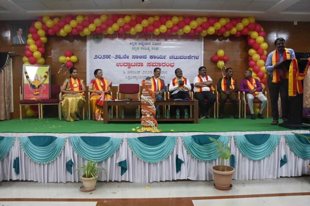 ದಿನಾಂಕ: ೦೩.೧೨.೨೦೨೫ ರಂದು ರಾಯಚೂರಿನ ಆದಿಕವಿ ಶ್ರೀ ಮಹರ್ಷಿ ವಾಲ್ಮೀಕಿ ವಿಶ್ವವಿದ್ಯಾನಿಲಯದ ಕನ್ನಡ ಅಧ್ಯಯನ ವಿಭಾಗದ ಕನ್ನಡ ಸಾಹಿತ್ಯ ಸಂಘದ ೨೦೨೫-೨೬ ನೇ ಸಾಲಿನ ಕಾರ್ಯಚÀಟುವಟಿಕೆಗಳ ಉದ್ಘಾಟನಾ ಸಮಾರಂಭವನ್ನು ಹಂಪಿ ಕನ್ನಡ ವಿಶ್ವವಿದ್ಯಾಲಯದ ಸಾಹಿತ್ಯ ಅಧ್ಯಯನ ವಿಭಾಗದ ಪ್ರಾಧ್ಯಾಪಕರು ಹಾಗೂ ಮುಖ್ಯಸ್ಥರಾದ ಡಾ.ವೆಂಕಟಗಿರಿ ದಳವಾಯಿ ಅವರು ನೆರವೇರಿಸಿದರು. ಈ ಸಂದರ್ಭದಲ್ಲಿ ಹಂಪಿ ಕನ್ನಡ ವಿಶ್ವವಿದ್ಯಾಲಯದ ಅಧ್ಯಯನಾಂಗ ನಿರ್ದೇಶಕರಾದ ಡಾ.ಅಮರೇಶ ಯತಗಲ್, ಉಪ ಕುಲಸಚಿವರಾದ ಡಾ.ಕೆ.ವೆಂಕಟೇಶ್, ಡೀನರಾದ ಪ್ರೊ.ಪಾರ್ವತಿ.ಸಿ.ಎಸ್., ಡಾ.ಲತಾ.ಎಂ.ಎಸ್. ಕನ್ನಡ ಅಧ್ಯಯನ ವಿಭಾಗದ ಉಪನ್ಯಾಸಕರಾದ ಡಾ.ಶಿವರಾಜ ಯತಗಲ್, ಡಾ.ಶಿವಲೀಲಾ ಬಸನಗೌಡ, ಡಾ.ಶರಣಪ್ಪ ಚಲವಾದಿ, ಡಾ.ರಾಜೇಶ್ವರಿ, ಡಾ.ಗೀತಾಂಜಲಿ ಉಪಸ್ಥಿತರಿದ್ದರು.
